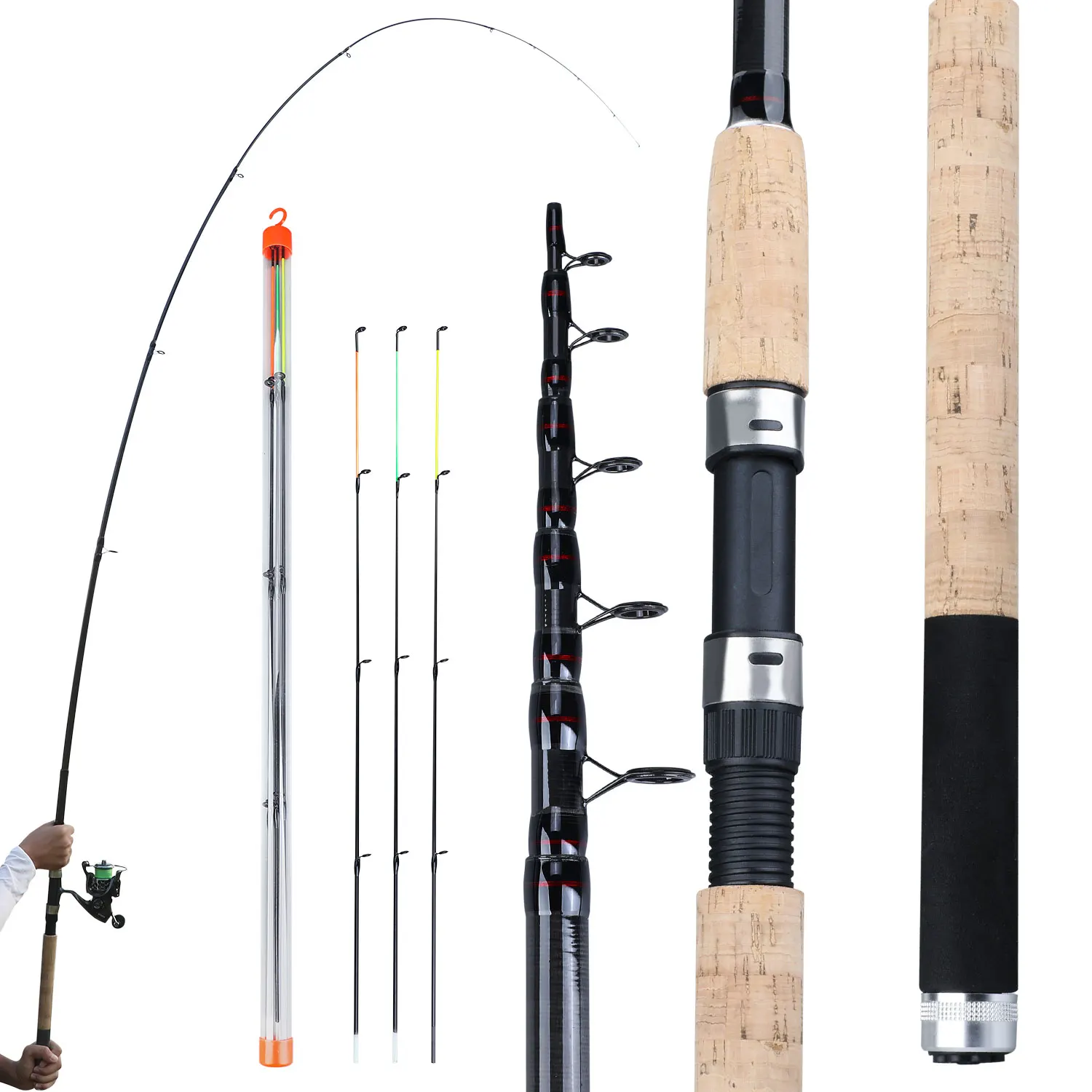 Sougayilang New Telescopic Lure Rod 1.8M 2.1M 2.4M 2.7M Carbon Fiber Cork Wood Handle Spinning Rod Fishing Pole Tackle
